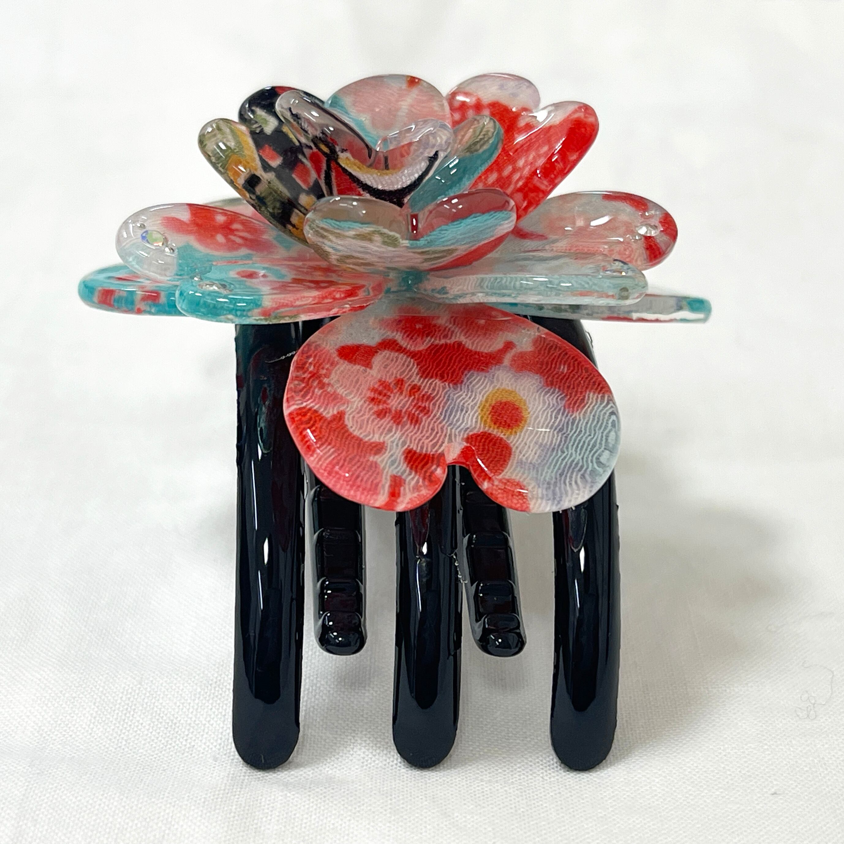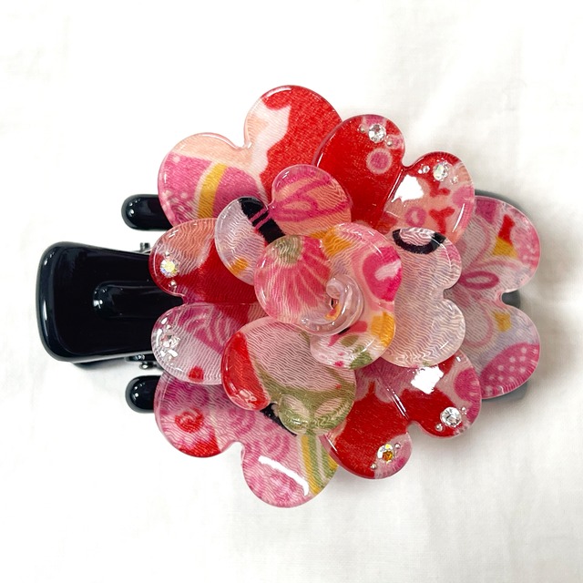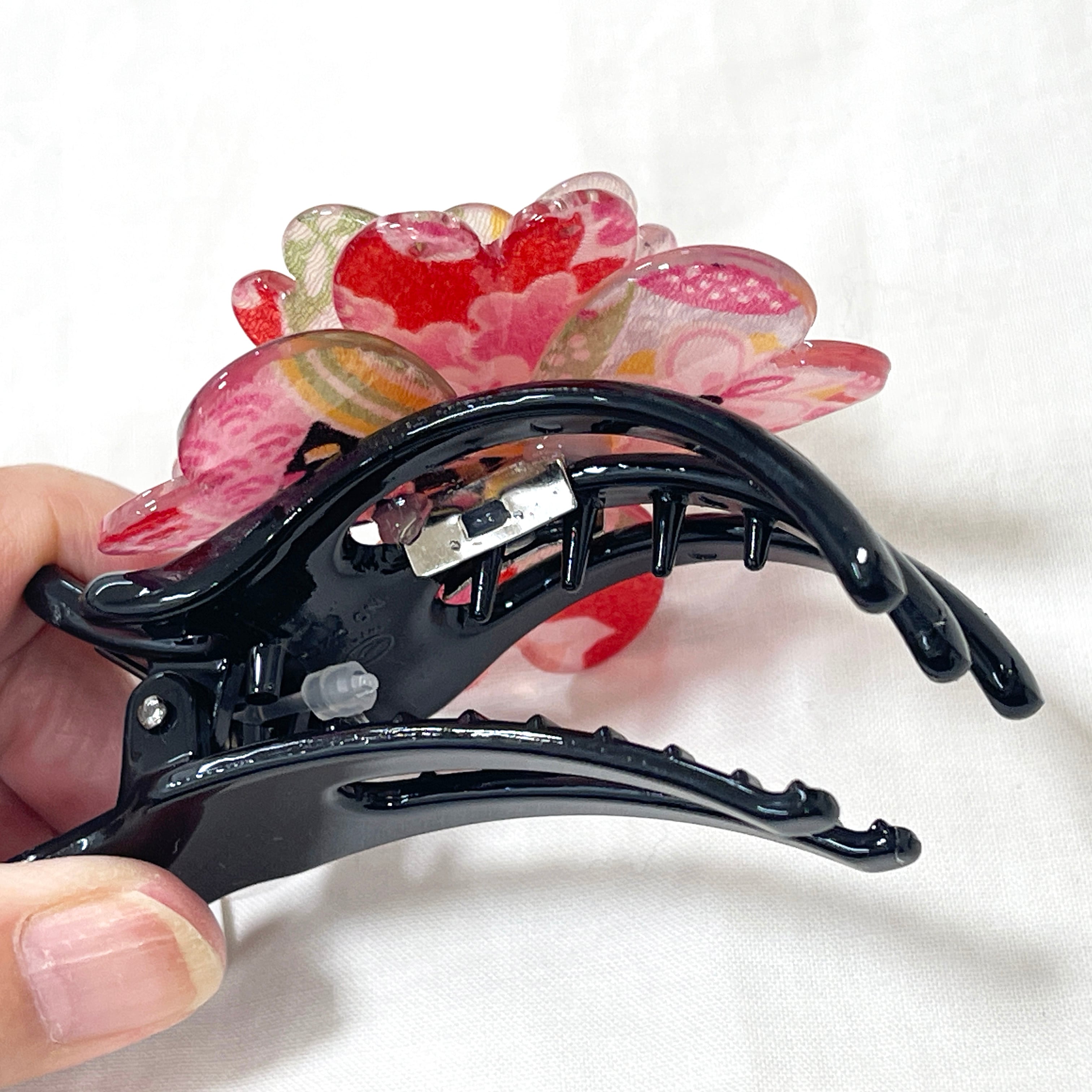 フラワー ヘアクリップ 3本爪クリップ 髪飾り 和柄