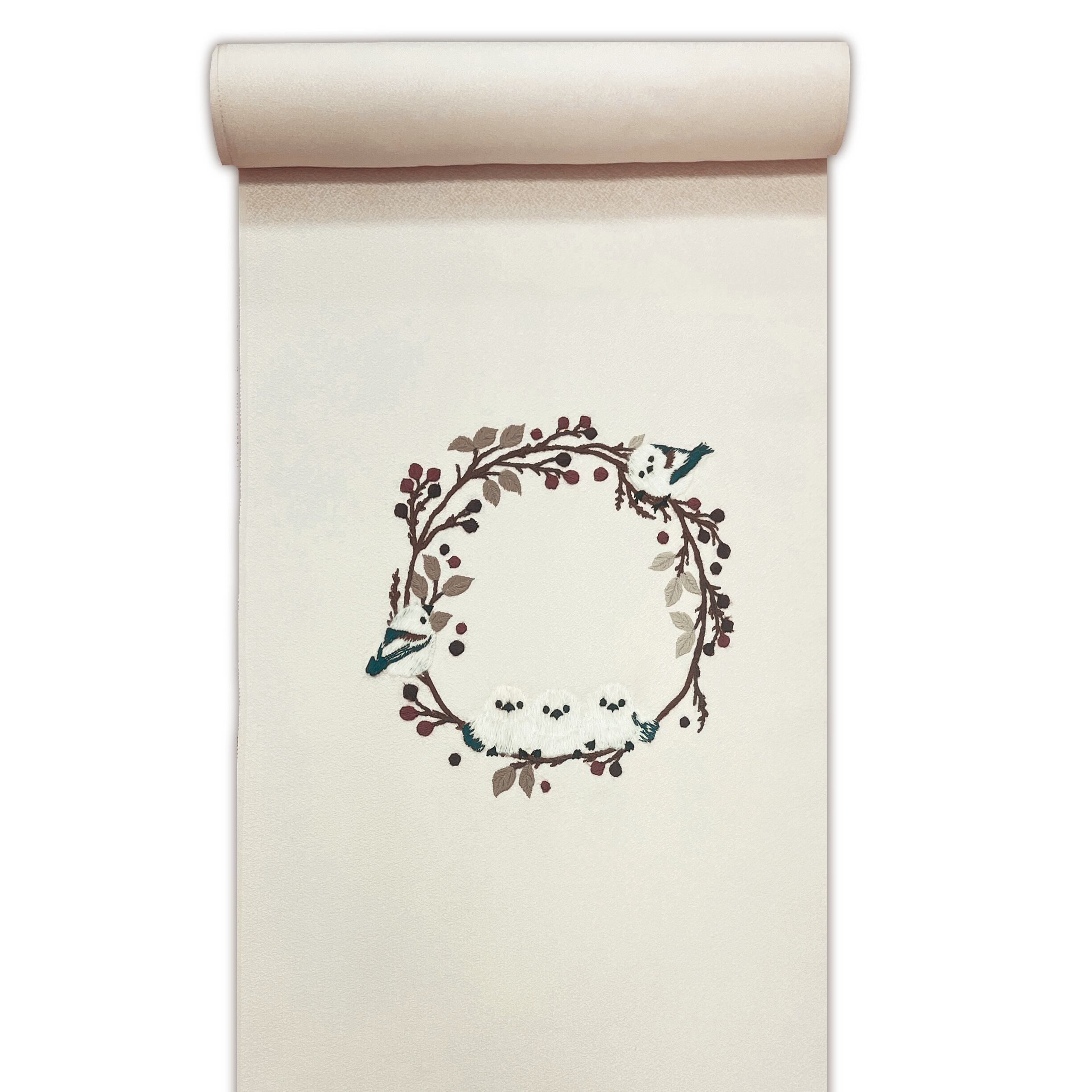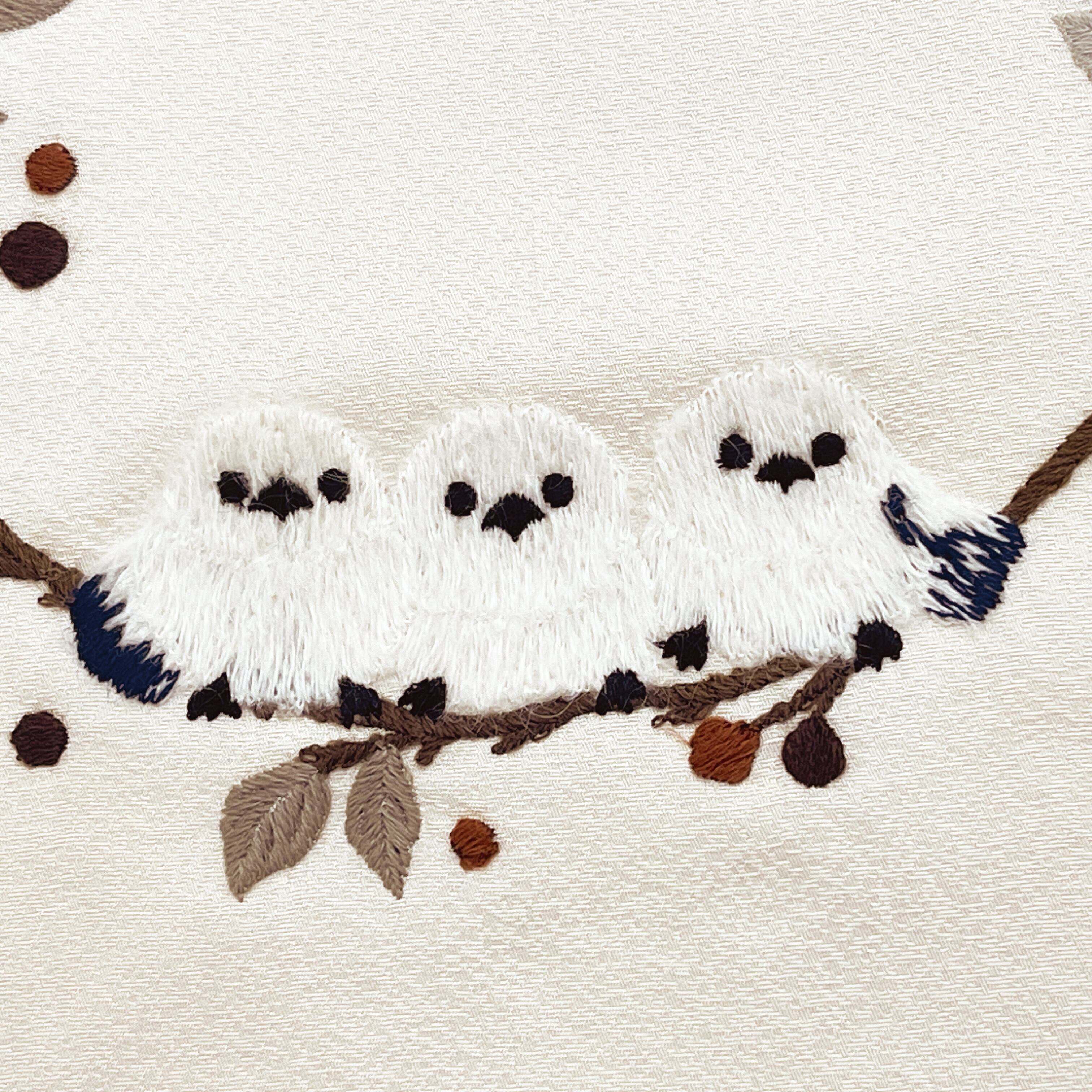 刺繍柄 九寸名古屋帯 シマエナガ 未仕立て 6-2364