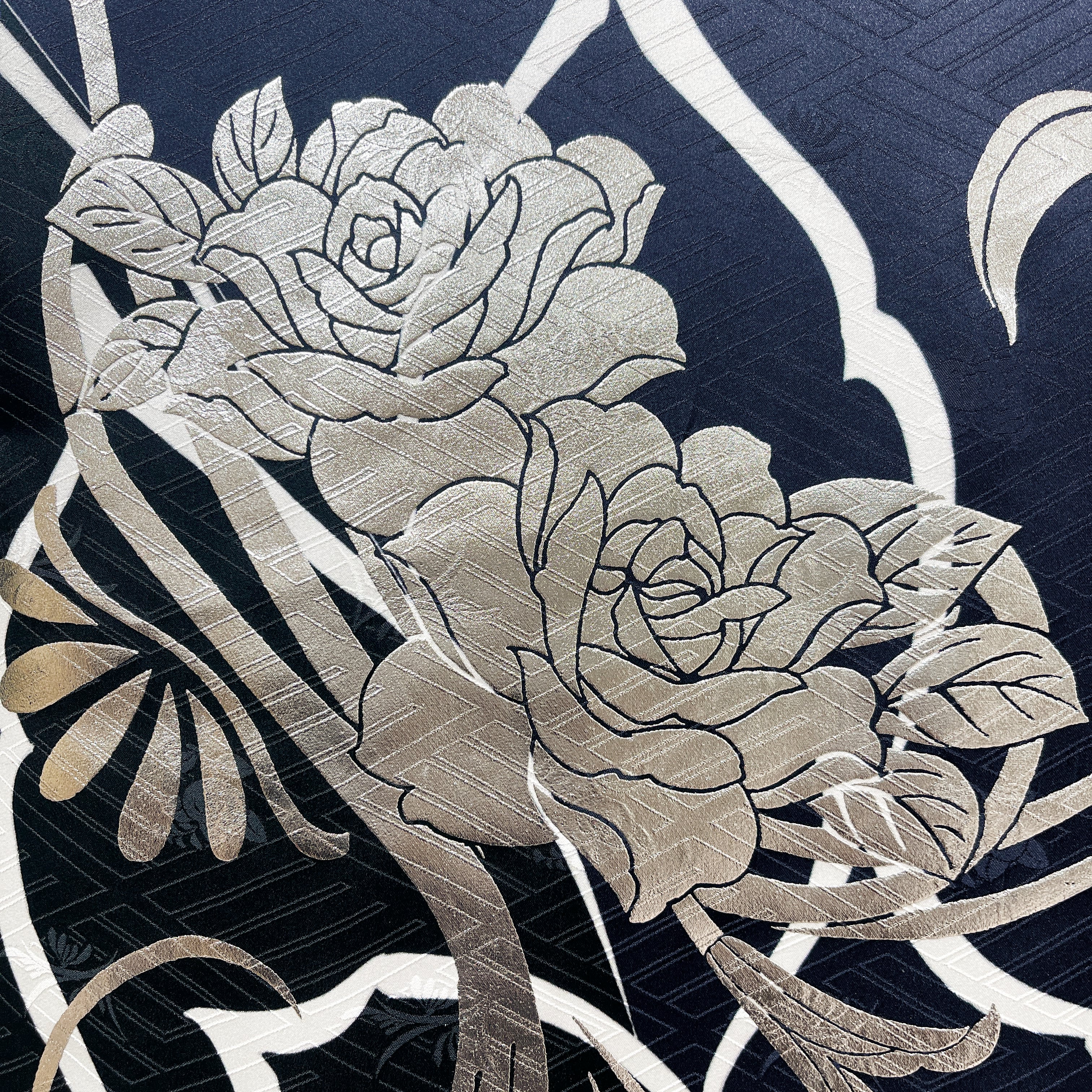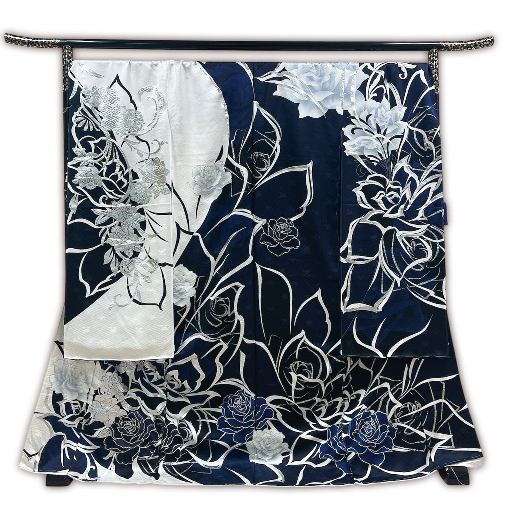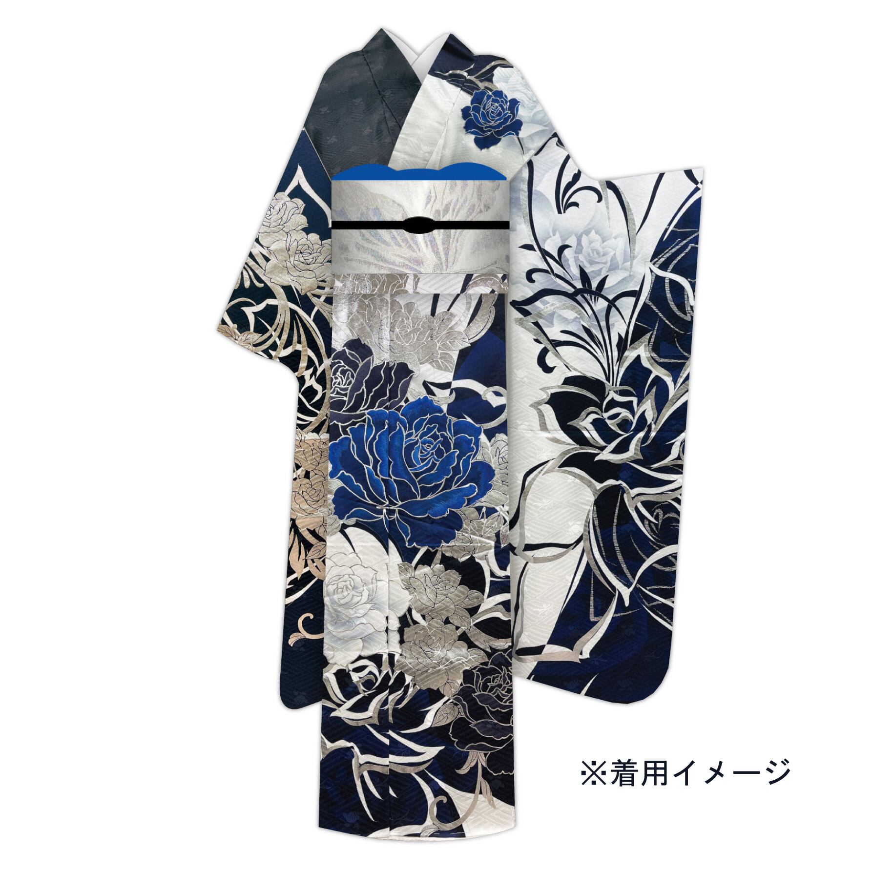 銀で彩られた薔薇が大胆でゴージャスに煌めく振袖です。