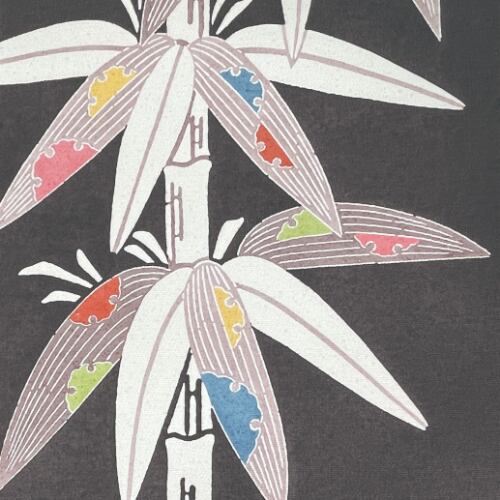 和染め紅型とは:初代栗山吉三郎が沖縄にて琉球紅型の技法を習得し、それを京都にて京友禅の技法と融合し、和染紅型として発表した京紅型です。華やかで大胆な配色に、繊細で上品な風合いが特徴。伝統の中に新しさが感じられる、大胆な竹のデザインの名古屋帯です。