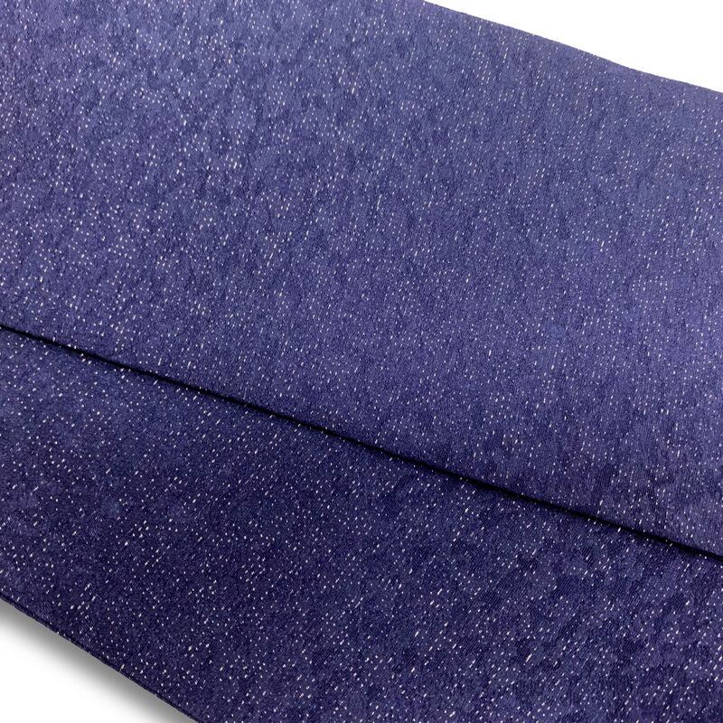 紺地にシルバーのラメが施された、お仕立て済みの巻き帯です。大衆演劇の役者さんへのプレゼントにもよくお使いいただいています。芯が入っているので締まりが良く、しっかりと巻いていただけます。帯の先に芯は入っておりません。結んだあと、だらりと垂らすので「だらり帯」とも呼ばれます。