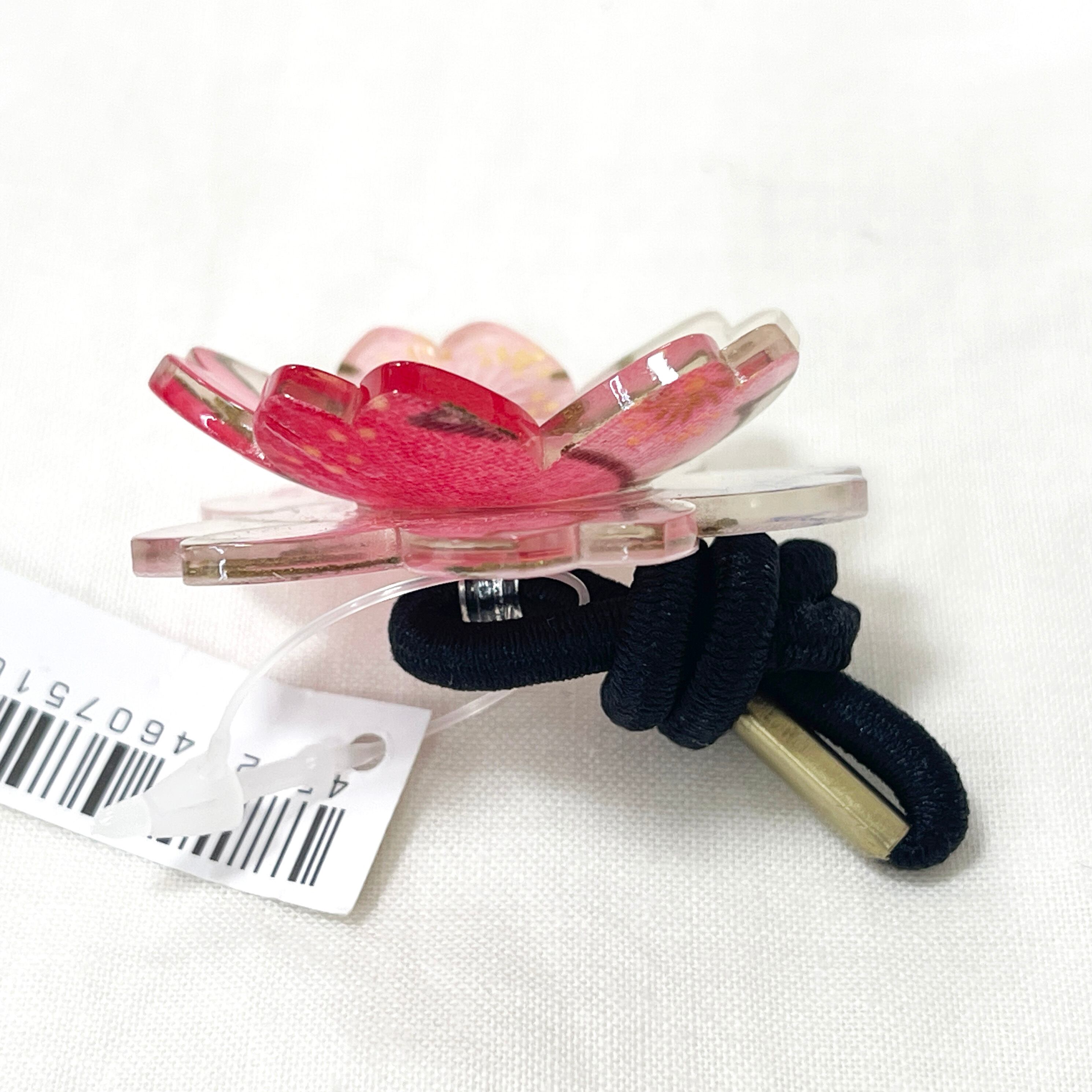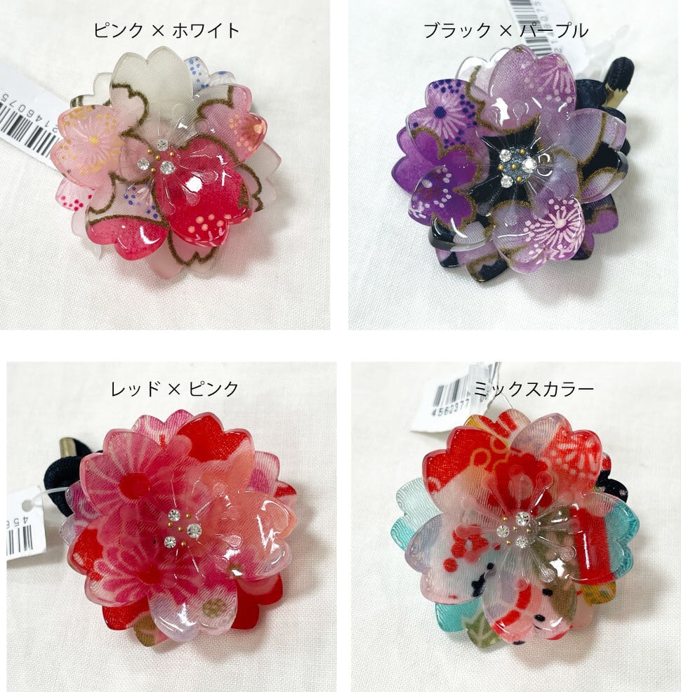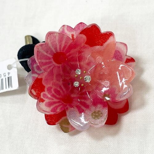 和装にはもちろん、普段のファッションにもお使いいただけるヘアゴムです。透明感のあるアクリルに和柄の生地を閉じ込め、後姿をお洒落に演出して頂けます。キラキララインストーン付き。