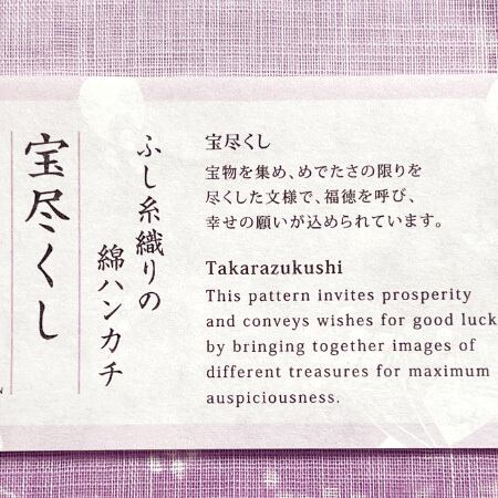 吉祥文様をさりげなくデザインに取り入れた贈り物にふさわしいハンカチです。想いや意味を添えるだけでなく、四季の移ろいに合わせてお使いいただけるデザインです。大切な方への贈り物などにいかがでしょうか。ラッピングにふさわしい美しい帯状のパッケージには吉祥紋様の説明が日本語・英語で記載されており、海外の方へのギフトにも大変喜ばれます。ラッピングなしでそのままお渡ししても様になります。